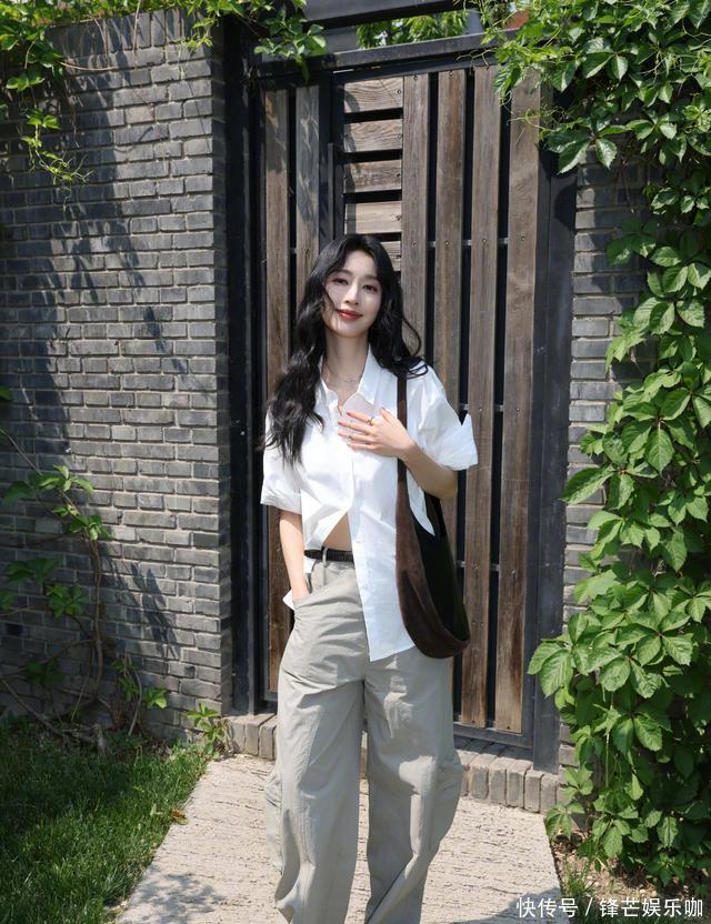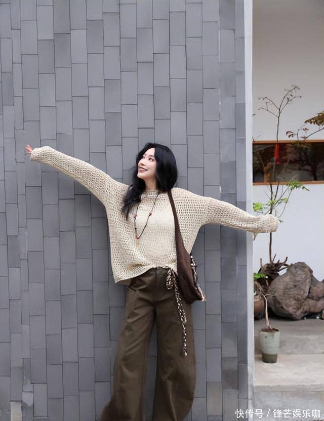 最出圈的造型,是她把通勤风和度假风混在一起:镂空针织、咖色运动裤、亚麻拖鞋,再来个故意磨花的背包。腰带还是男款,她自己多扎了个孔,裤腰就堆出自然褶皱,看着松松垮垮,却又很高级。这一身告诉所�+女性:松弛不是随意,是一种算计过的自在。