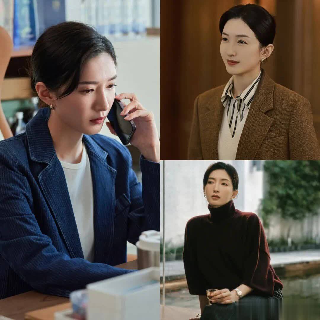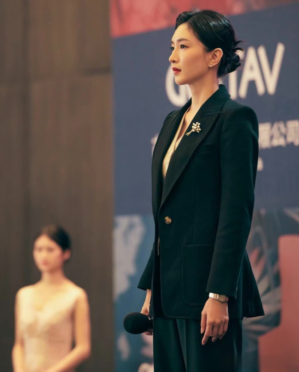 从剧中能够发现,她的穿搭单品大多是西装、衬衫、高领等基础且正式的款式,版型十分规整。